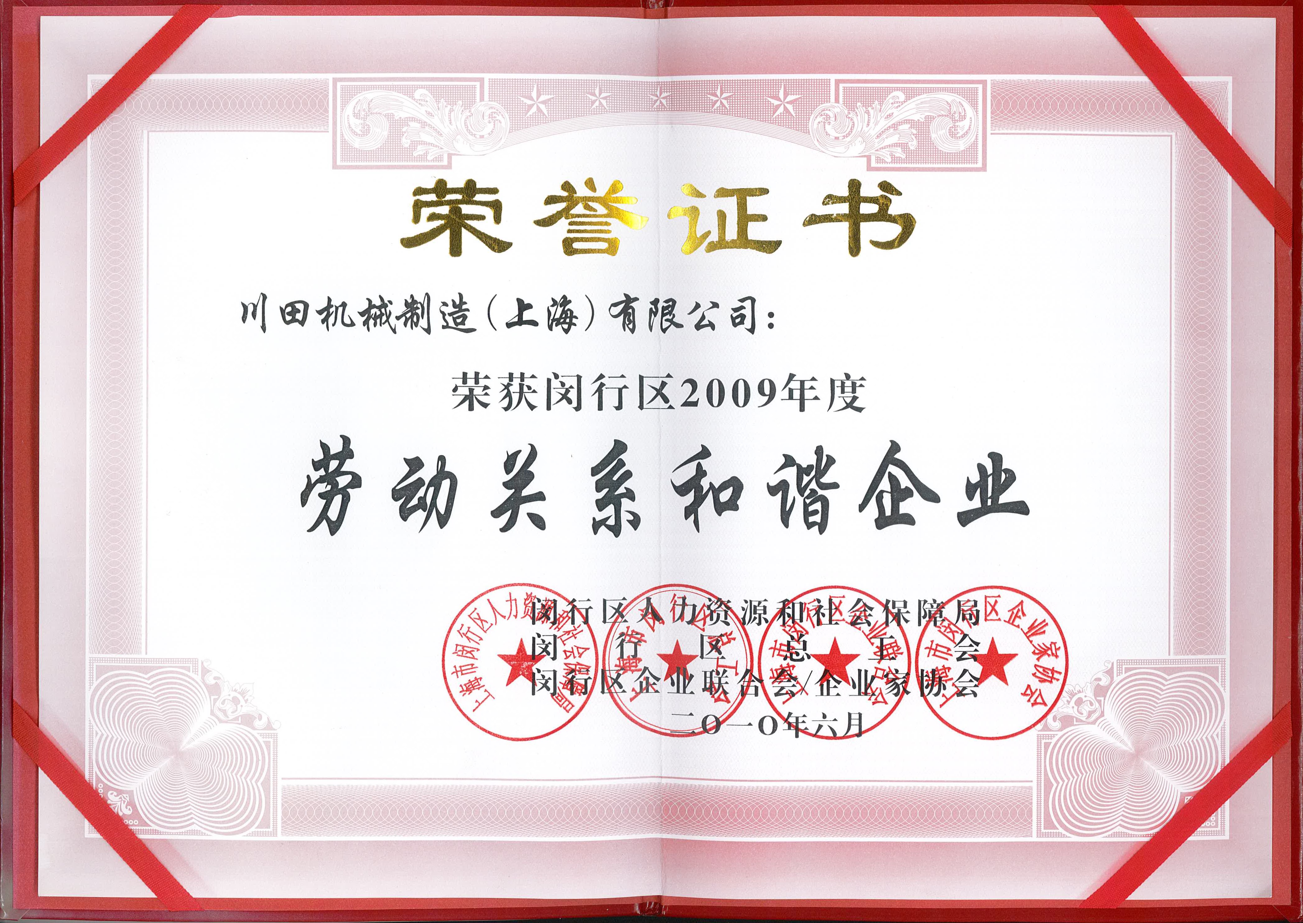 2009年度上海市労務(wù)関係安定企業(yè)証書
